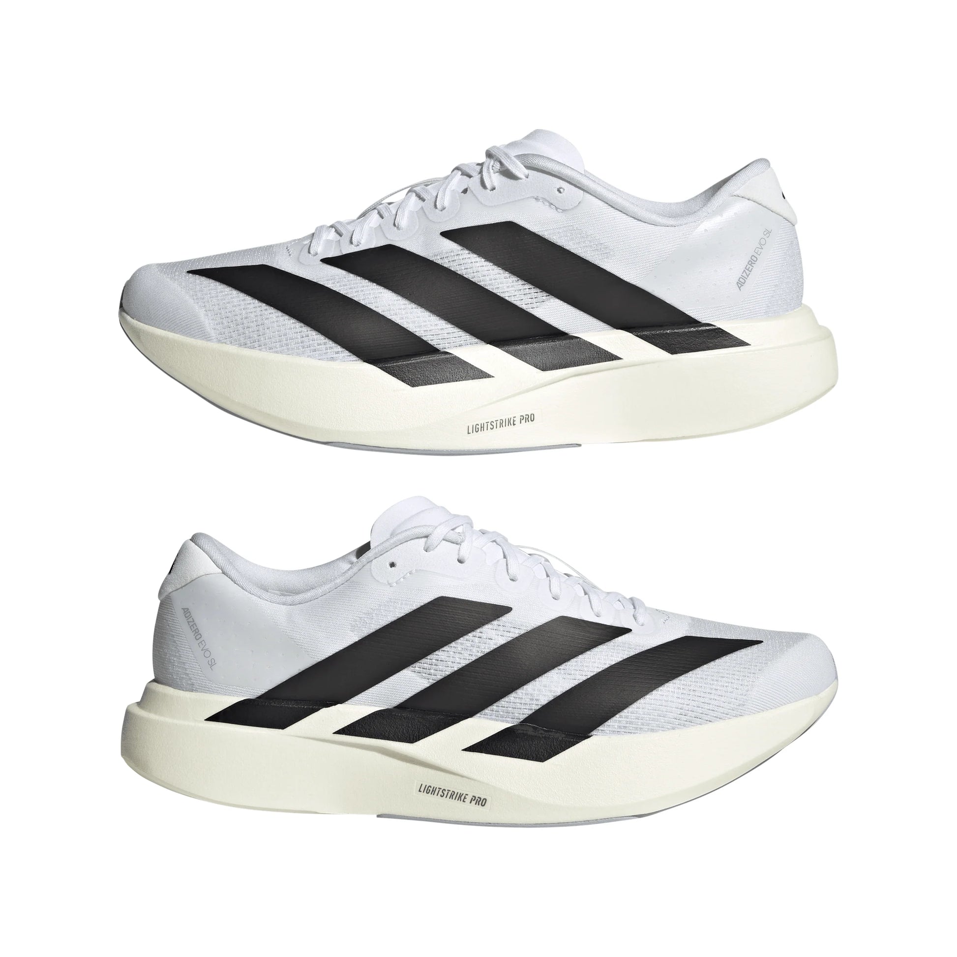 Diseñadas para quienes corren con pasión y buscan romper sus propios récords, las Adidas Adizero EVO SL son el arma secreta de los corredores élite. Su diseño negro con detalles blancos combina elegancia y agresividad, ideal para quienes quieren destacar en la pista y fuera de ella.